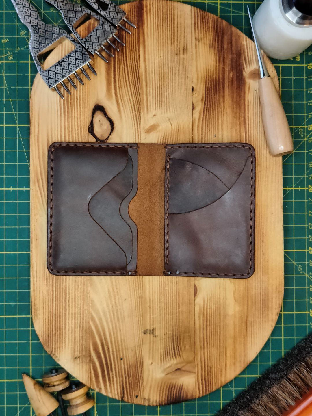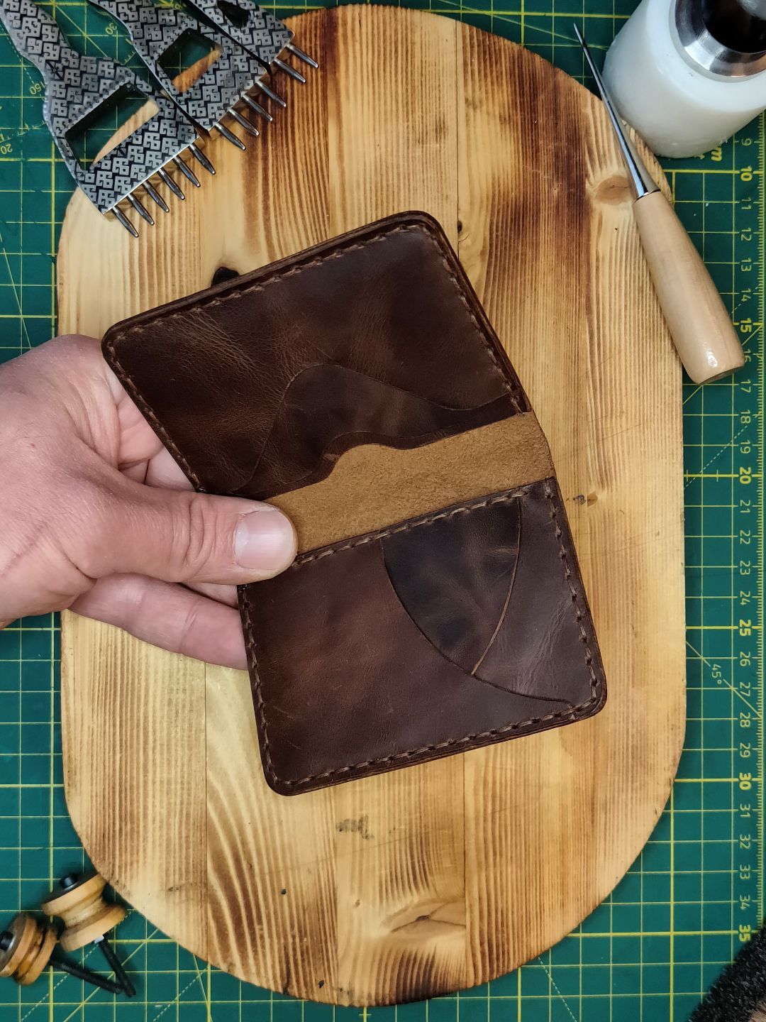 Gael Bifold El Yapımı Minimal Crazy Hakiki Deri Kartlık Cüzdan